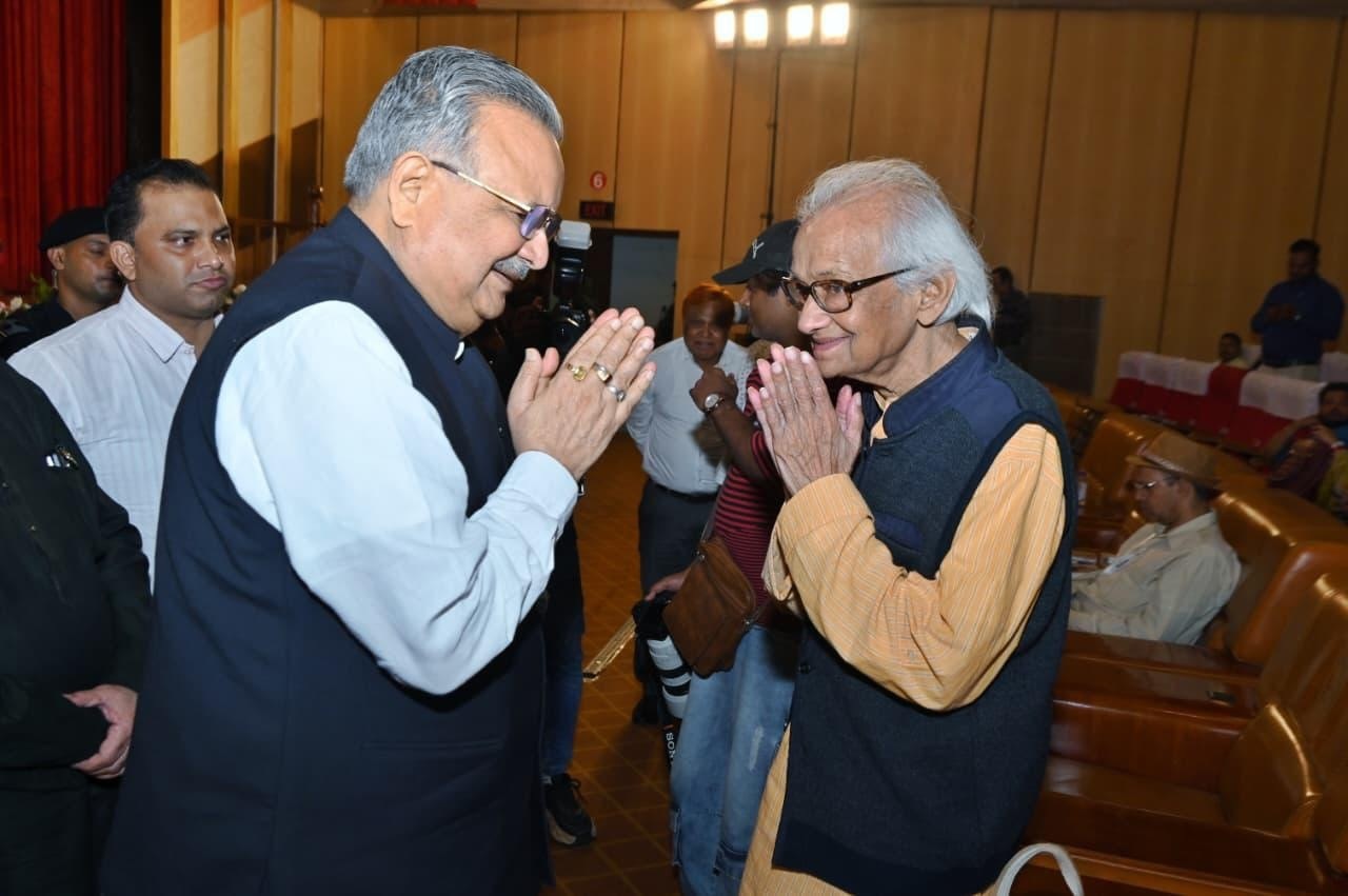 लेकिन हिंद युग्म उत्सव -2025 का सबसे शर्मनाक नज़ारा, सबसे निंदनीय दृश्य था- छत्तीसगढ़ में आदिवासियों के जबरन विस्थापन और क़त्लेआम के सूत्रधार रमन सिंह के आगे माथा नवाते, हाथ जोड़ते, गदगद मुस्कान मारते विनोद कुमार शुक्ल और नरेश सक्सेना।