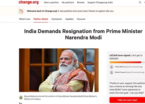 मोदी के इस्तीफे की मांग वाली ऑनलाइन याचिका पर रातोंरात 4 लाख से अधिक हस्ताक्षर!